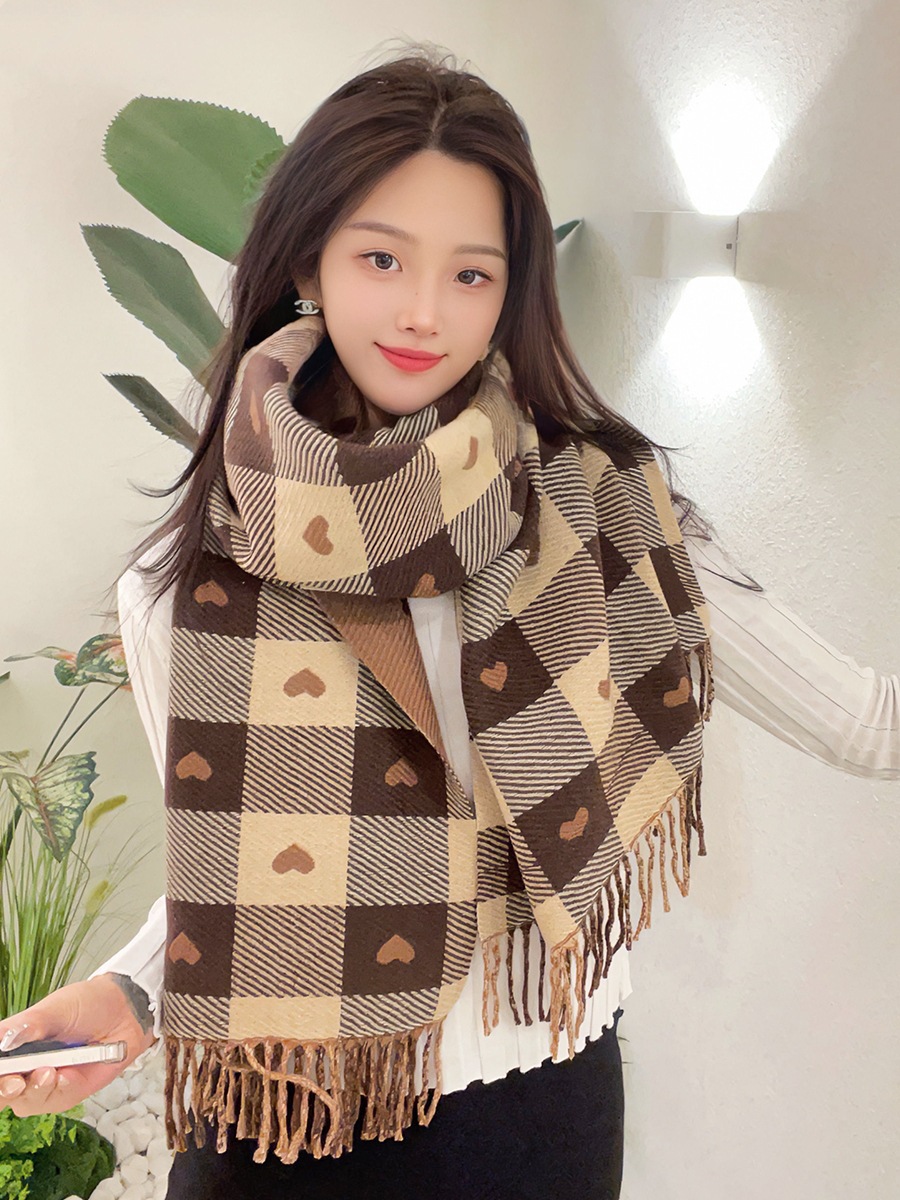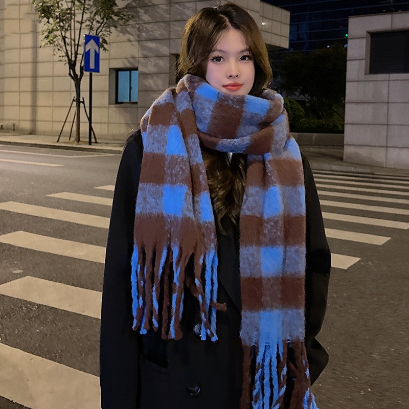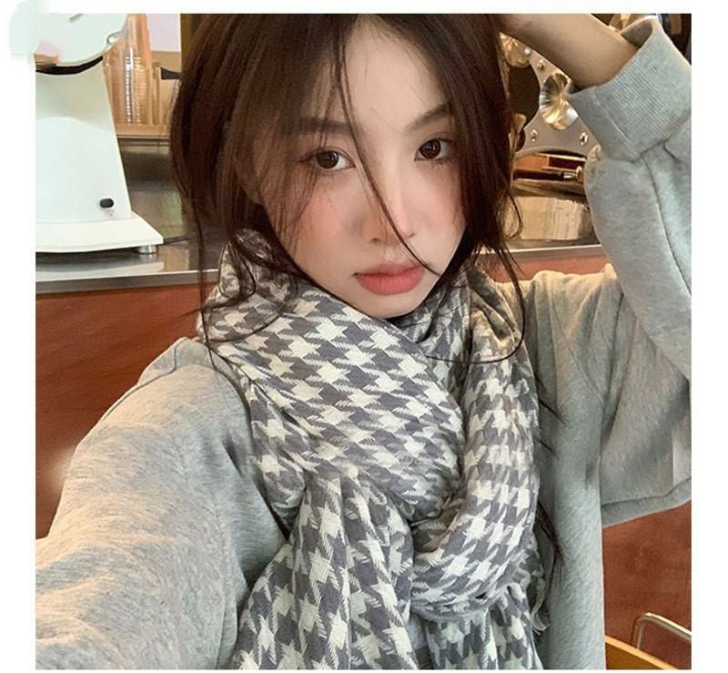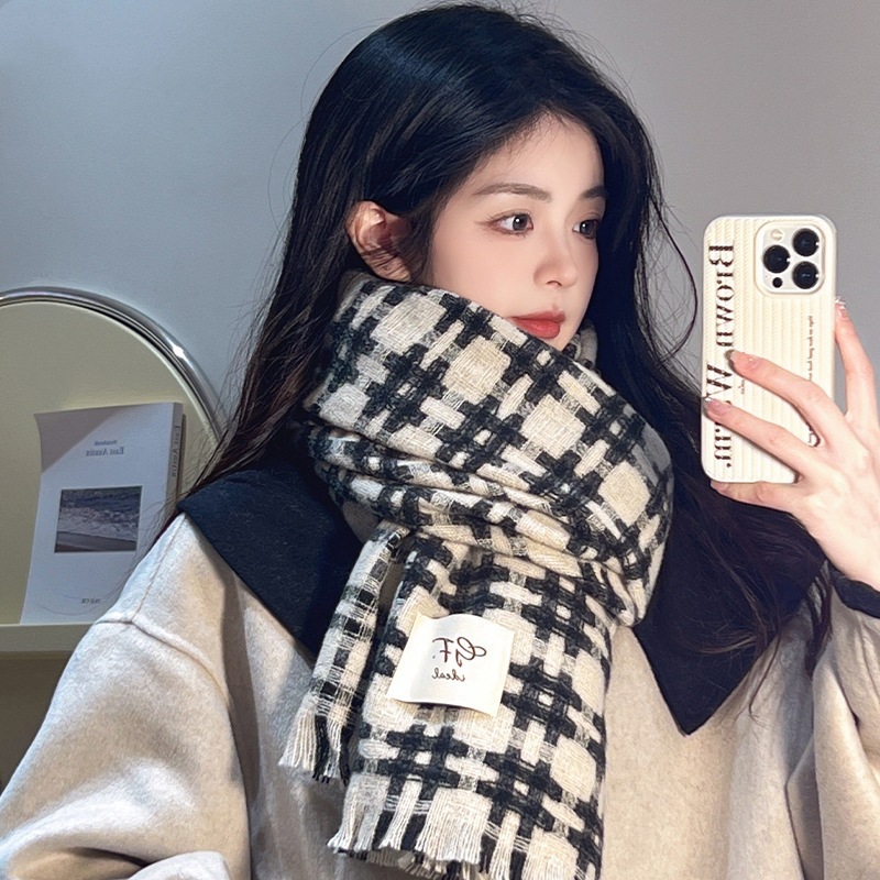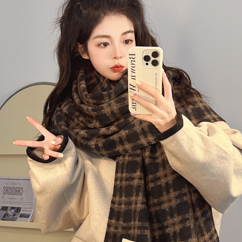 Autumn Winter New Scarf for Women, High-End Plaid Shawl, Versatile Korean Style, Thickened Dual-Use Neck Warmer