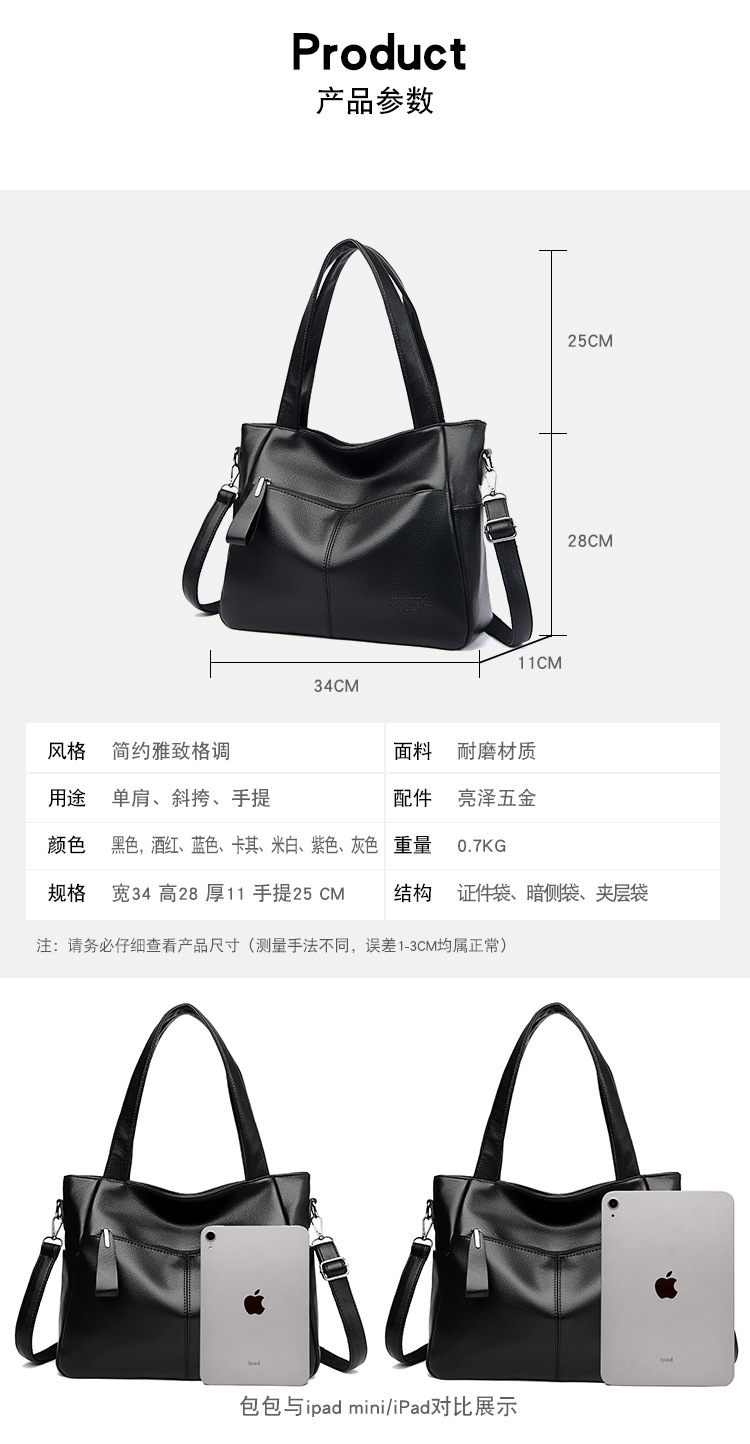 Hot-Selling Women's Bags Large Capacity Bag New Shoulder Bag Women's Bag Fashion All-Match Tote Bag Soft Leather Hand Carrying Messenger Bag