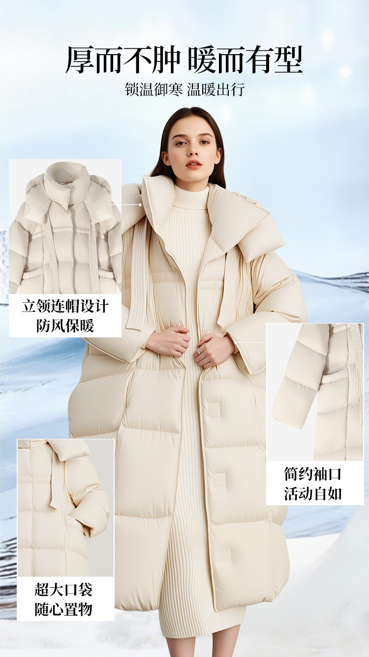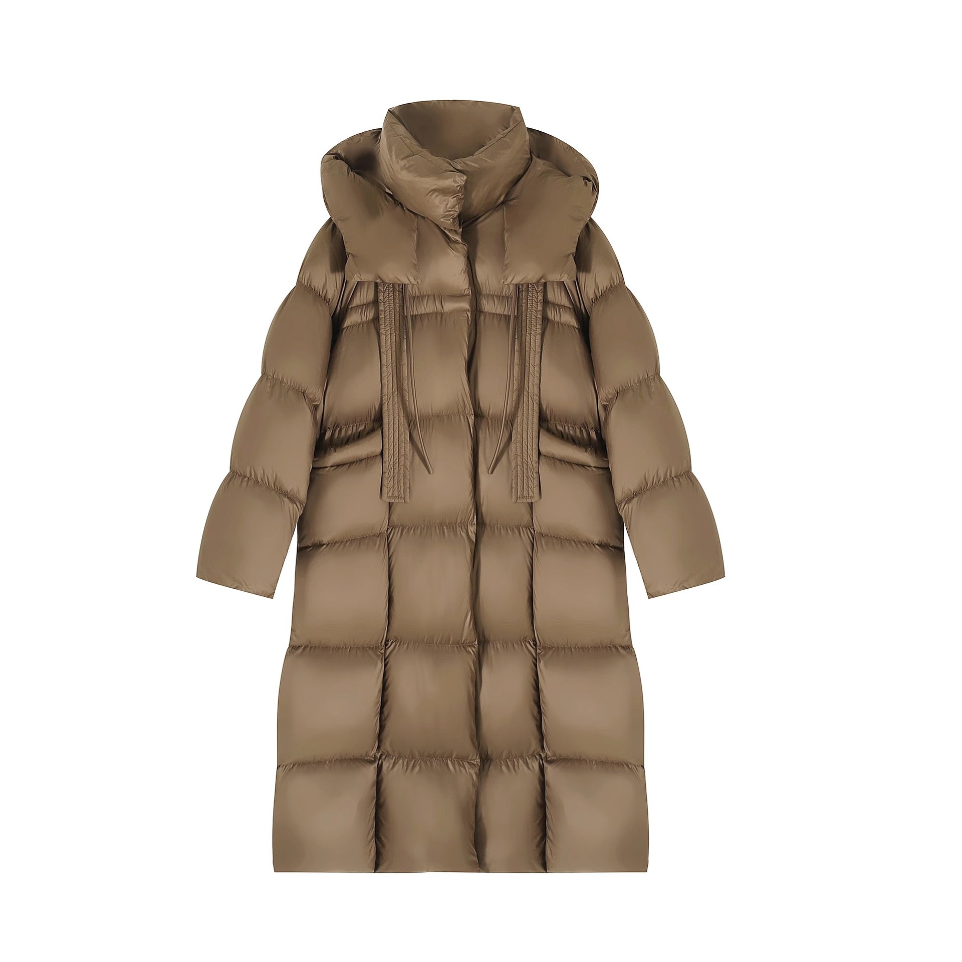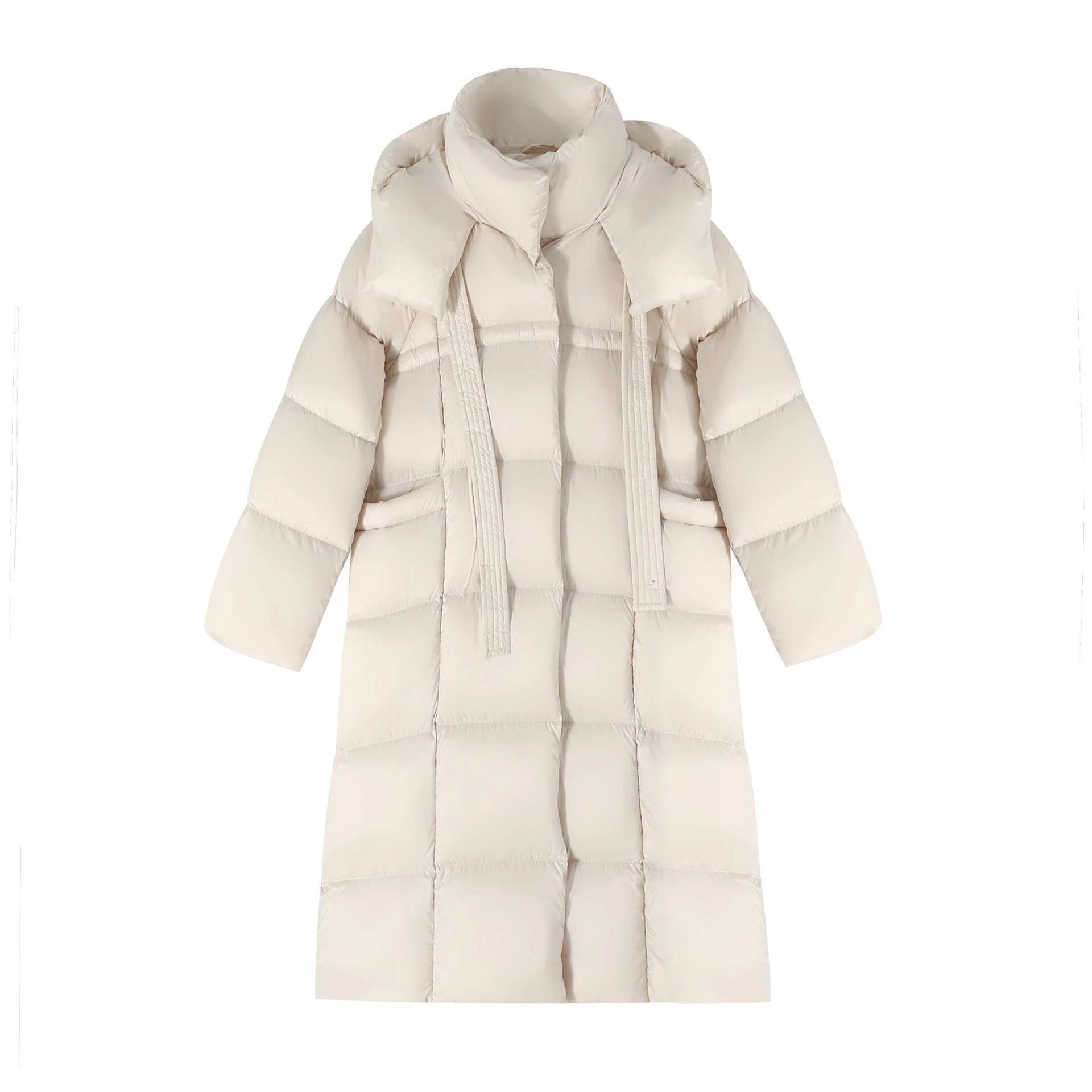 Long Ribbon High-End Thick Loose Fit Plus Size Over-the-Knee Long Sleeve Coat White Duck Down Jacket