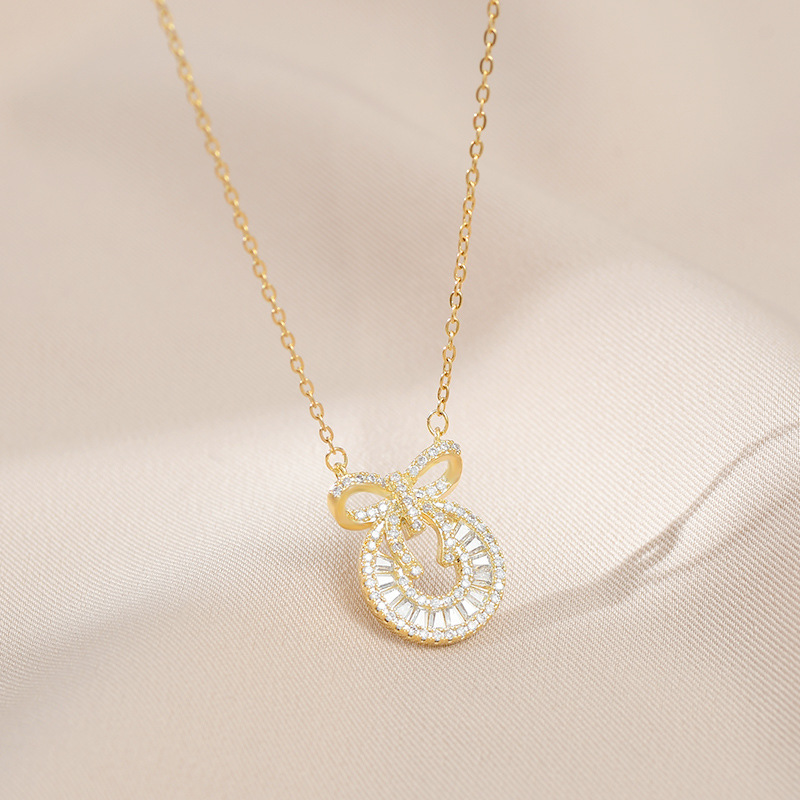 Micro-inlaid Zircon Elegant Collarbone Chain for Women High-end Bow Necklace Korean Fashion Personality Choker