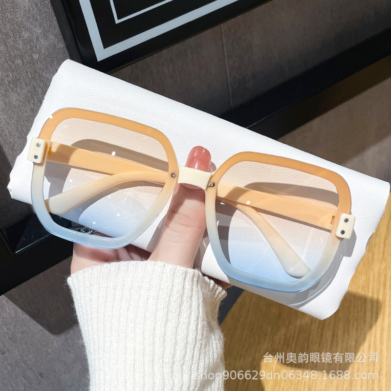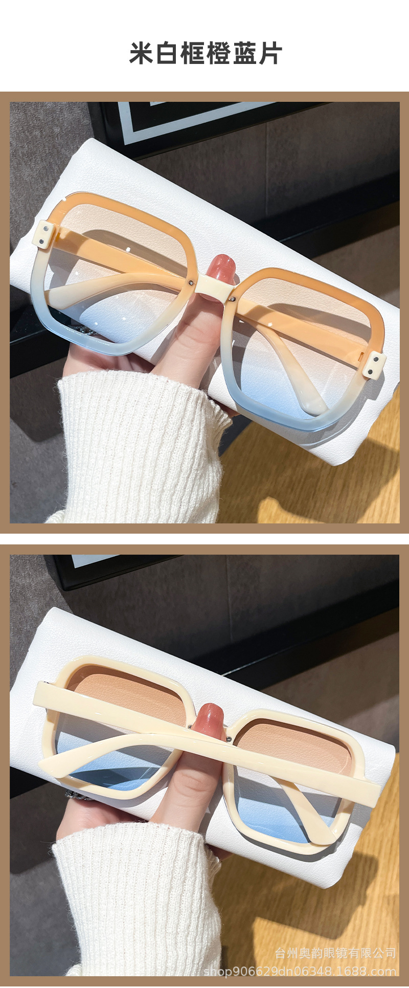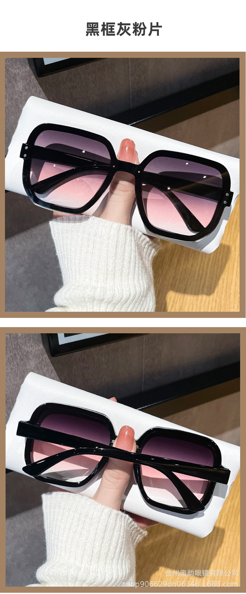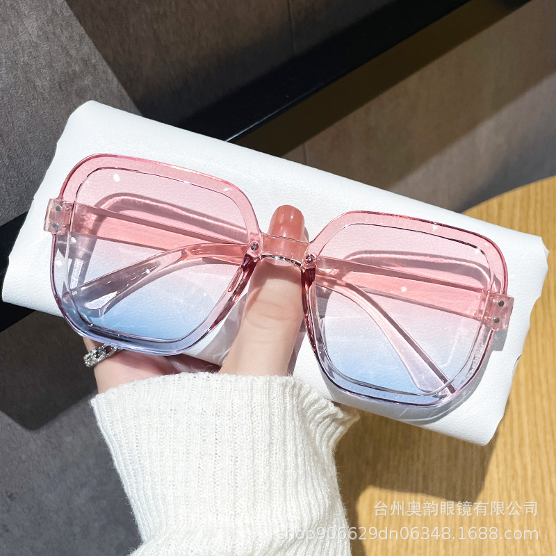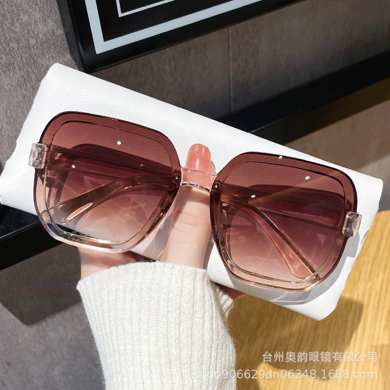 New Fashion Gradient Rice Stud Square Frame Sunglasses for Men and Women, High-End Look, No-Makeup Street Style Versatile Sunglasses