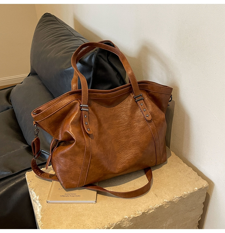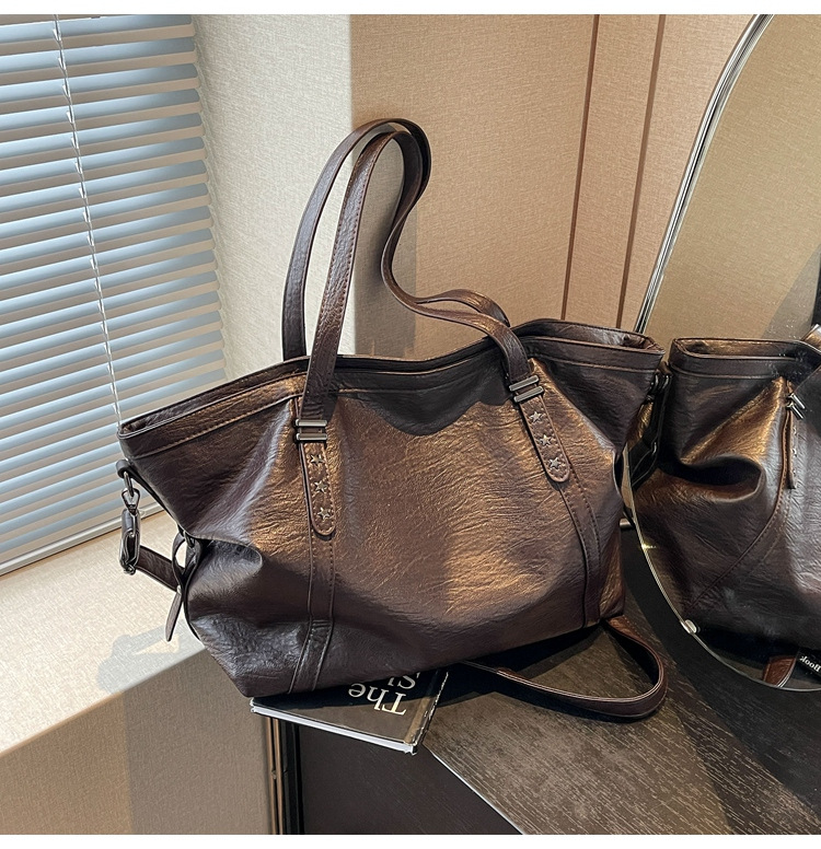 Single Shoulder Tote Bag Large Capacity Women's High-end Soft Leather Retro Commuter Bag Autumn Winter New Crossbody Bag for Women